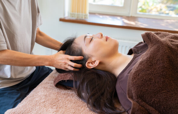 ナツメ堂のリラクゼーションはアロママッサージによって血液やリンパの循環を良くし、さらにメディセル筋膜リリースによって筋膜の癒着を改善していくのがナツメ堂のリラクゼーションメニューの特徴です。気兼ねなくお受けいただけるように女性スタッフが担当いたします。